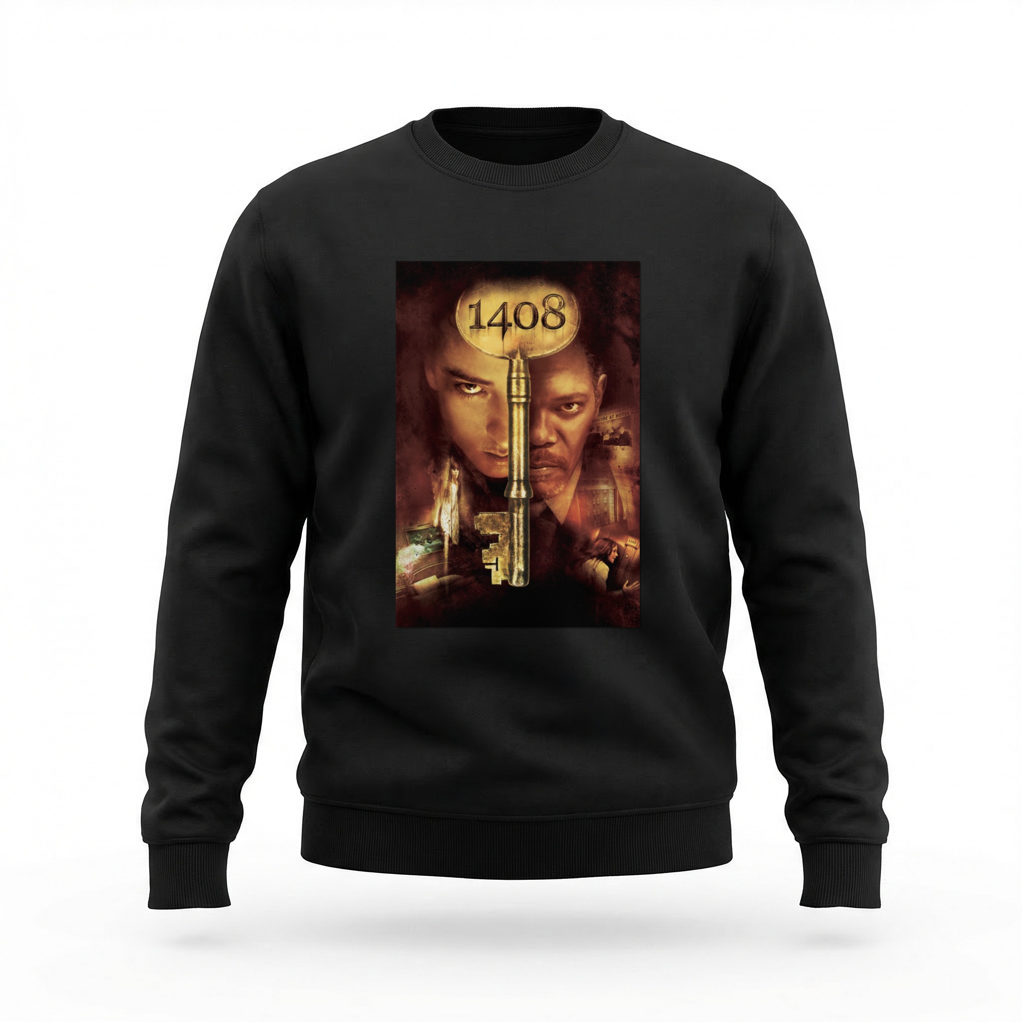 "1408" é um dos filmes de terror psicológico mais perturbadores já adaptados de Stephen King. Dirigido por Mikael Håfström em 2007, o longa acompanha um escritor cético que decide passar a noite no quarto 1408 do Hotel Dolphin — um cômodo marcado por décadas de mortes inexplicáveis e fenômenos sobrenaturais sem explicação racional. O que começa como mais uma investigação de rotina rapidamente se transforma em um pesadelo sem saída: paredes que sufocam, tempo que colapsa e sanidade que desmorona cena a cena. Com John Cusack e Samuel L. Jackson, a obra entregou um horror claustrofóbico e atmosférico que se tornou referência no gênero e cultuado por cinéfilos do horror ao redor do mundo. Assustador, intenso e absolutamente cult. Na blusa moletom careca, o horror se veste com estilo limpo. Blusa moletom careca com tecido confortável e estampa nítida.