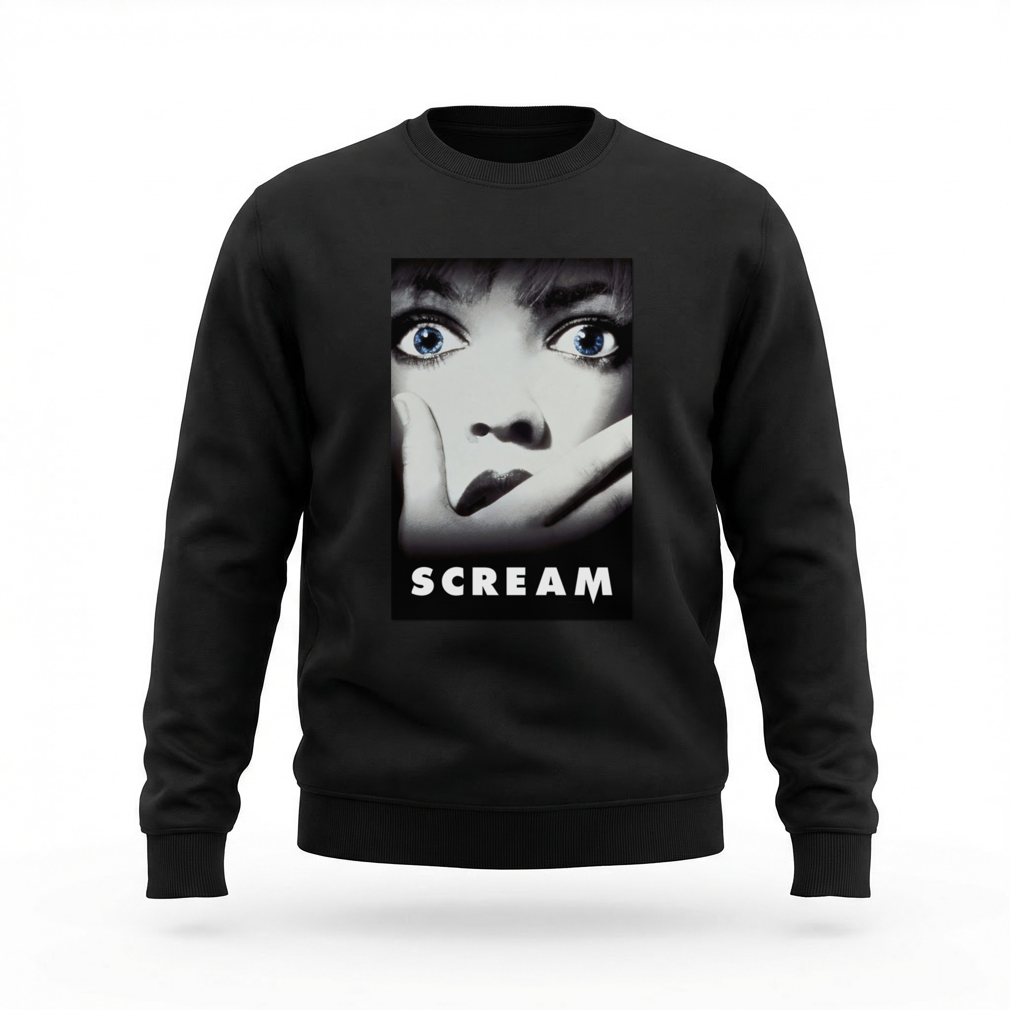 Em 1996, Wes Craven ressuscitou o slasher e reescreveu as regras do horror com 'Scream'. Ghostface — a máscara branca espectral inspirada no quadro 'O Grito' de Edvard Munch — tornou-se um dos ícones mais reconhecíveis do cinema de terror mundial. Com roteiro afiado de Kevin Williamson, o filme brincava com as convenções do gênero enquanto as executava com maestria sombria, criando um clássico meta-horror que assombra telas e imaginários até hoje. Sidney Prescott, aquela ligação às 23h e a pergunta 'Qual é o seu filme de terror favorito?' entraram para sempre na cultura pop macabra global. Três décadas depois, Ghostface continua sendo símbolo absoluto do horror moderno — cultuado por cinéfilos do gênero em todo o mundo. Na blusa moletom careca, o horror se veste com estilo limpo. Blusa moletom careca com tecido confortável e estampa nítida.