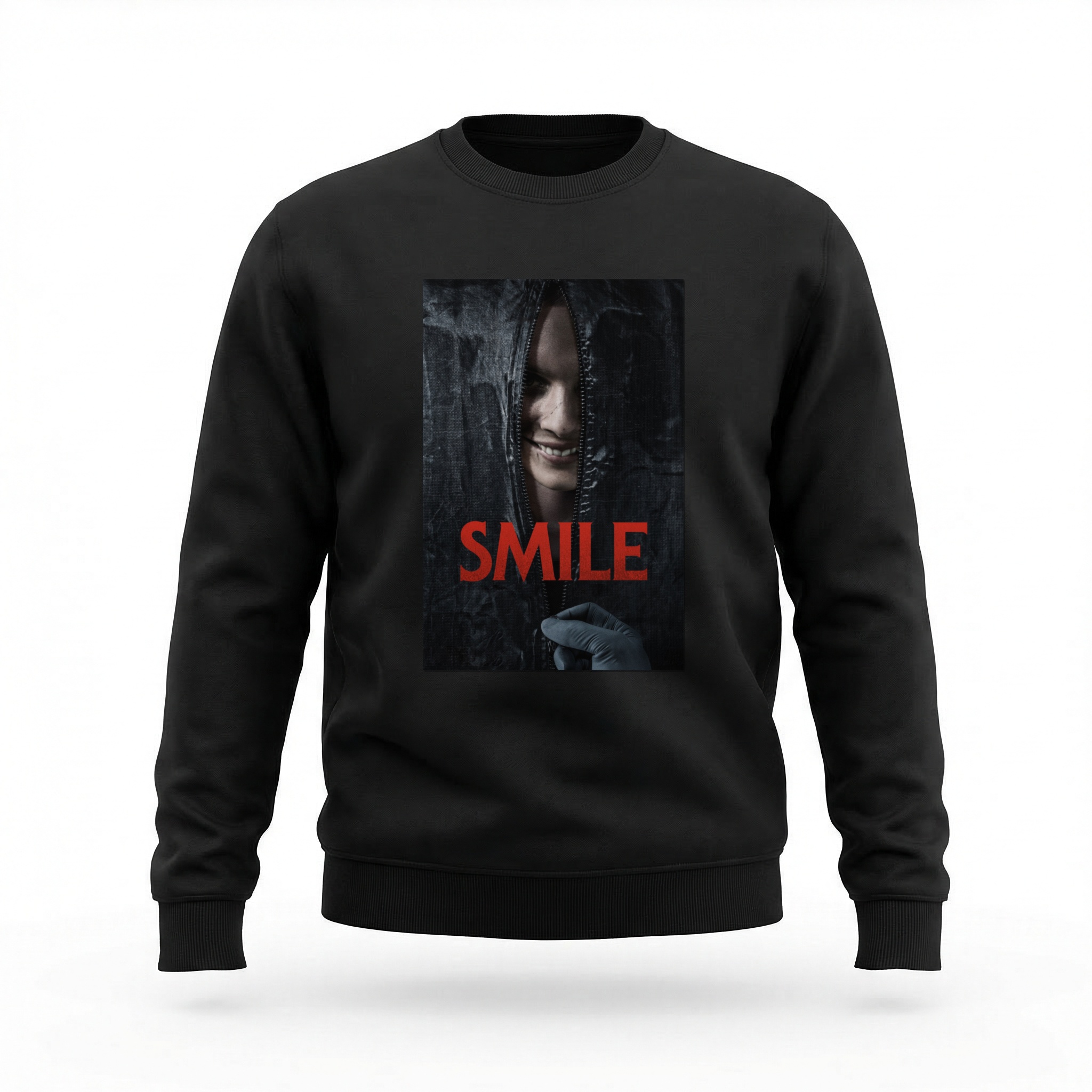 "Smile" (2022), dirigido por Parker Finn, entrou para o panteão do horror contemporâneo ao transformar o sorriso — símbolo universal de alegria — em símbolo de terror absoluto. A trama acompanha uma psiquiatra que testemunha o suicídio de uma paciente com uma expressão perturbadora congelada no rosto e, a partir daí, passa a ser perseguida por uma entidade sobrenatural que se manifesta através de sorrisos distorcidos, inquietantes e impossíveis. Cada aparição é uma ruptura da realidade; cada sorriso, uma sentença. Cult instantâneo do horror moderno, o filme dominou o imaginário sombrio de toda uma geração de fãs do gênero, provando que o verdadeiro terror mora nos detalhes mais banais do cotidiano. Na blusa moletom careca, o horror se veste com estilo limpo. Blusa moletom careca com tecido confortável e estampa nítida.