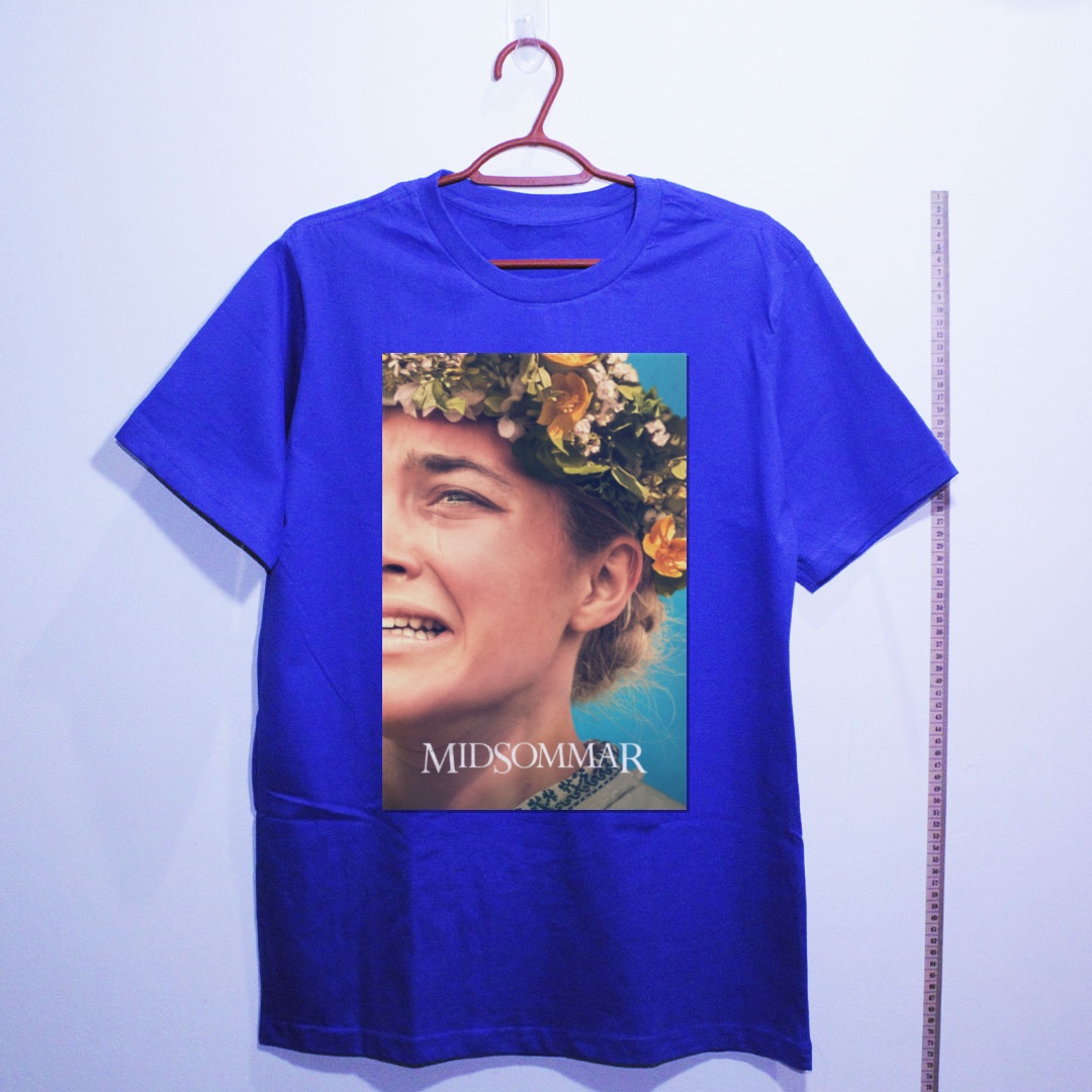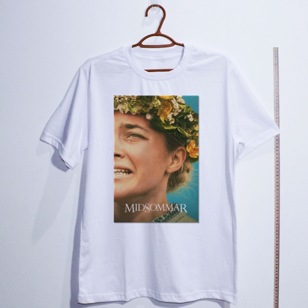 Em plena luz do sol escandinavo, o horror mais perturbador dos últimos anos se revelou sem piedade. Midsommar (2019), dirigido por Ari Aster, transformou o folk horror em uma experiência visceral e hipnótica — rituais pagãos suecos, flores e sangue, uma comunidade que sorri enquanto consome. Diferente de qualquer coisa que o gênero havia produzido antes, o filme aterroriza sob um céu aberto e ensolarado, provando que o medo não precisa de escuridão para destruir a alma. Cult instantâneo do cinema de terror, Midsommar redefiniu o que significa ter medo à luz do dia e se tornou uma obsessão para os devotos do horror atmosférico e do cinema que assombra por dias. Essa camiseta traz o terror direto do cinema para o seu guarda-roupa. Camiseta de algodão com estampa nítida e tecido macio. Disponível em diversos tamanhos.