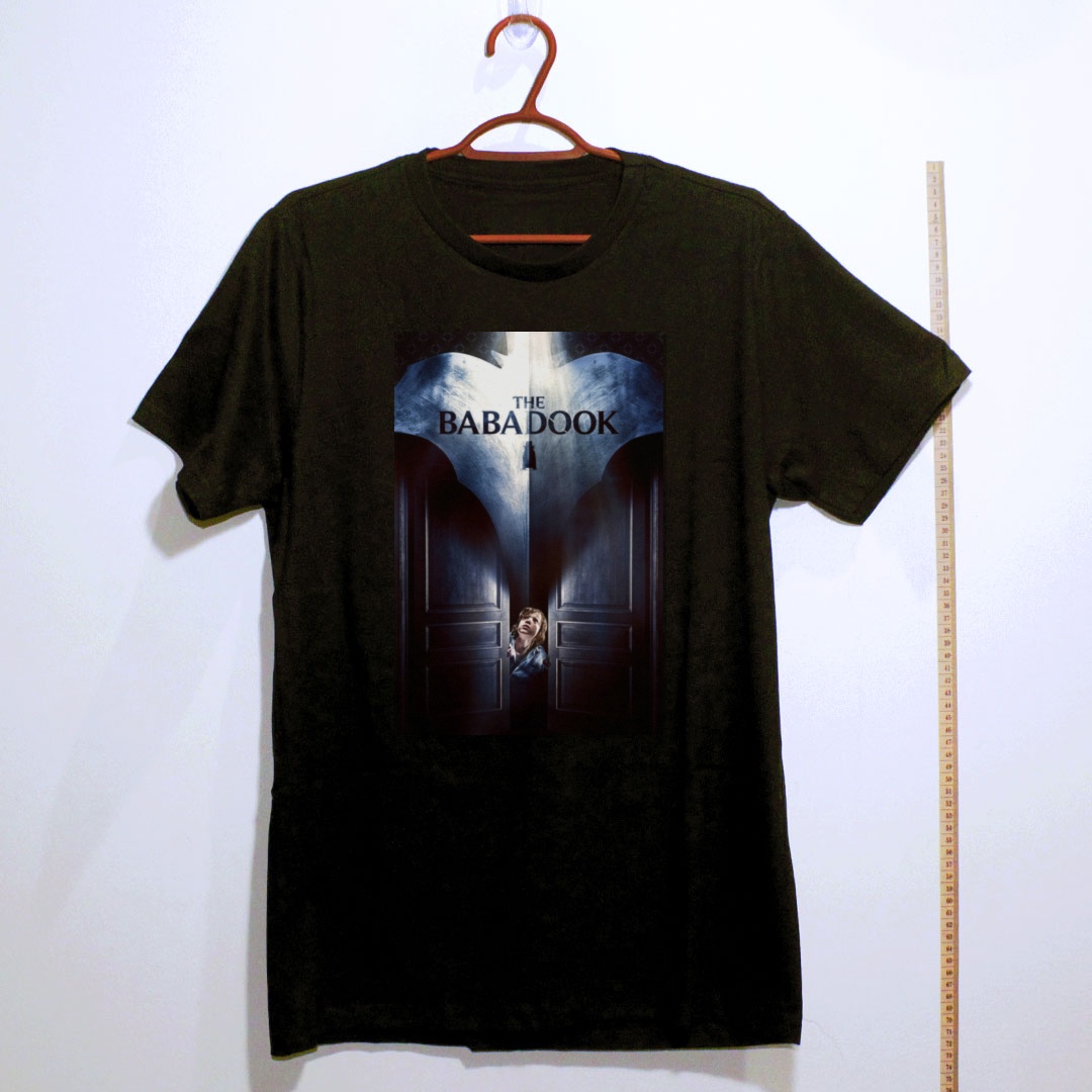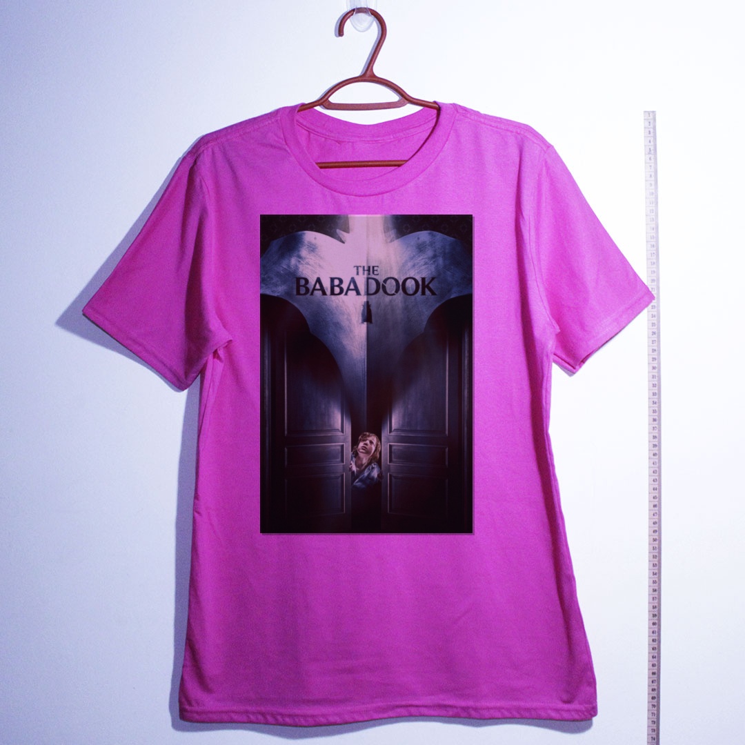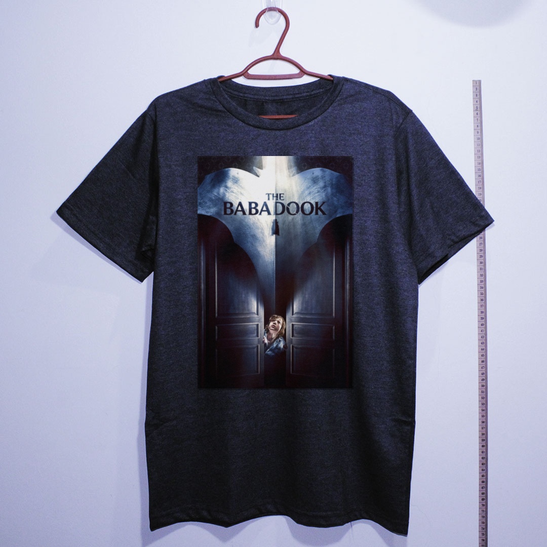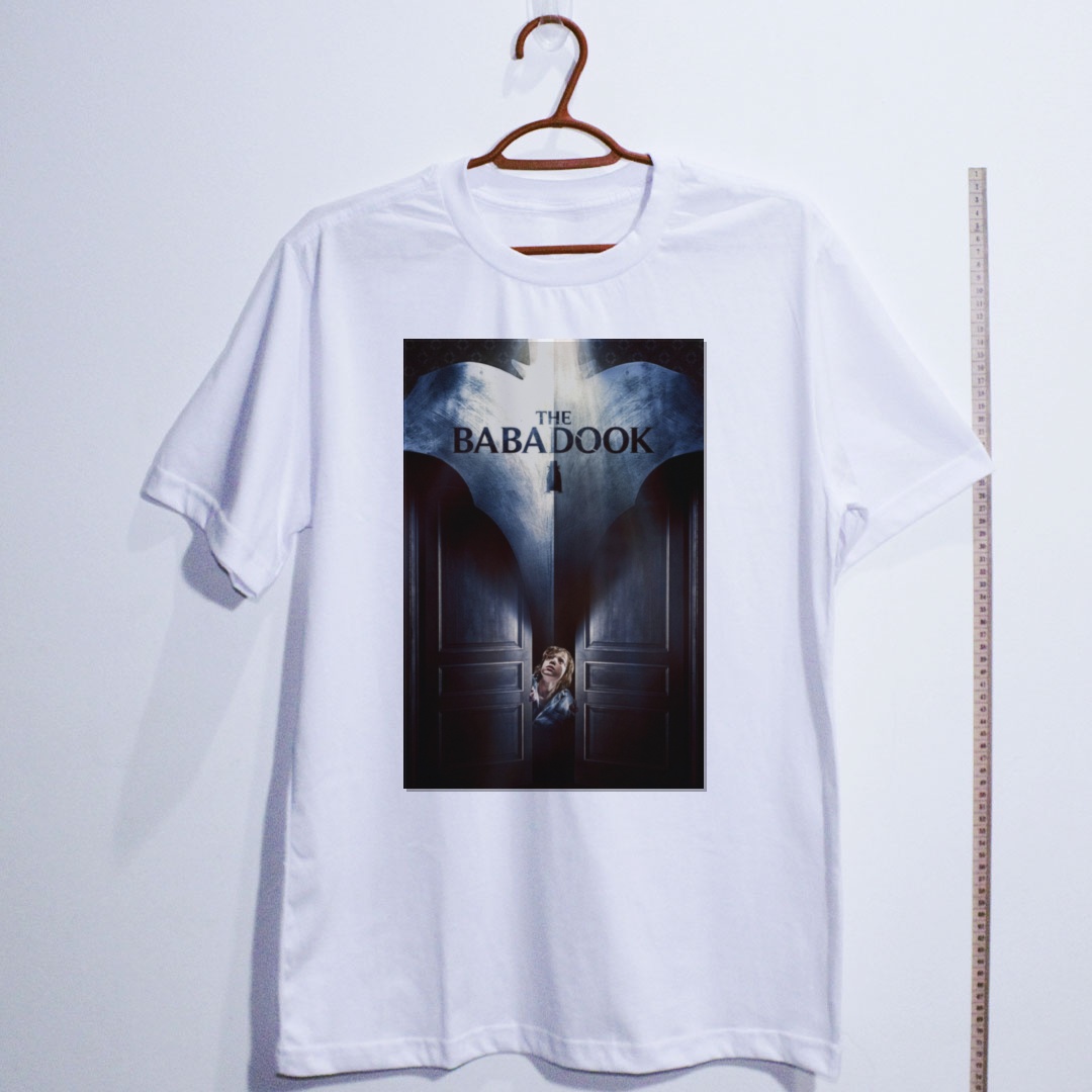 "Babadook... Babadook... Babadook." Se você pronunciou o nome três vezes, já sabe o que vem a seguir. Lançado em 2014 e dirigido pela australiana Jennifer Kent, The Babadook é um dos marcos absolutos do terror psicológico indie moderno. A história de Amelia e seu filho Samuel, assombrados por uma criatura sinuosa e perturbadora saída das páginas de um livro infantil misterioso, é uma alegoria visceral sobre luto, depressão e os monstros que habitam nossa própria mente. Aclamado pela crítica internacional e reverenciado por cinéfilos do gênero, o filme redefiniu o horror independente e garantiu seu lugar no panteão do cinema sobrenatural contemporâneo. Com sua cartola negra e dedos compridos como garras, o Babadook tornou-se um ícone perturbador da cultura do terror. Essa camiseta traz o terror direto do cinema para o seu guarda-roupa. Camiseta de algodão com estampa nítida e tecido macio. Disponível em diversos tamanhos.