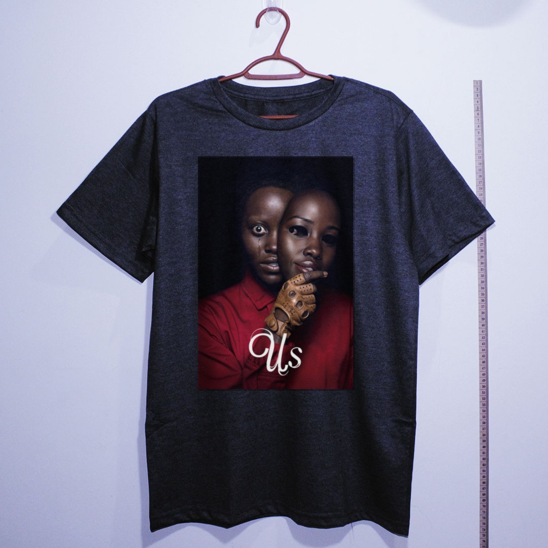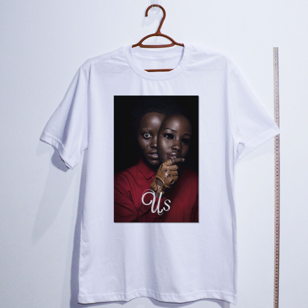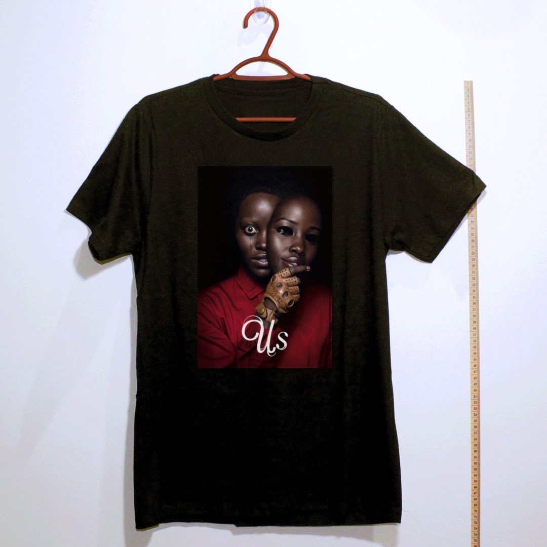 "Us" (Nós, 2019), dirigido por Jordan Peele, é um dos marcos mais perturbadores do terror psicológico contemporâneo. A história segue a família Wilson que, durante uma viagem ao litoral, se depara com algo impossível: versões sinistras de si mesmas. Chamados de Tethered, esses duplos sombrios emergem das sombras com uma determinação silenciosa e aterrorizante, espelhando cada movimento, cada respiração — mas com propósitos próprios e obscuros. Com a performance visceral de Lupita Nyong'o em dois papéis completamente opostos e uma direção que transforma o cotidiano em pesadelo absoluto, o filme é uma obra densa de simbolismo e tensão crescente. O horror aqui não vem apenas do sobrenatural — vem do que existe dentro de cada um de nós. Essa camiseta traz o terror direto do cinema para o seu guarda-roupa. Camiseta de algodão com estampa nítida e tecido macio. Disponível em diversos tamanhos.