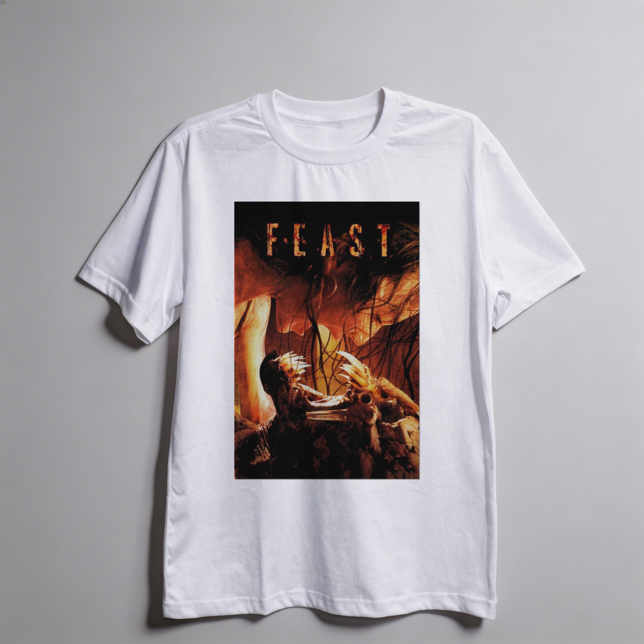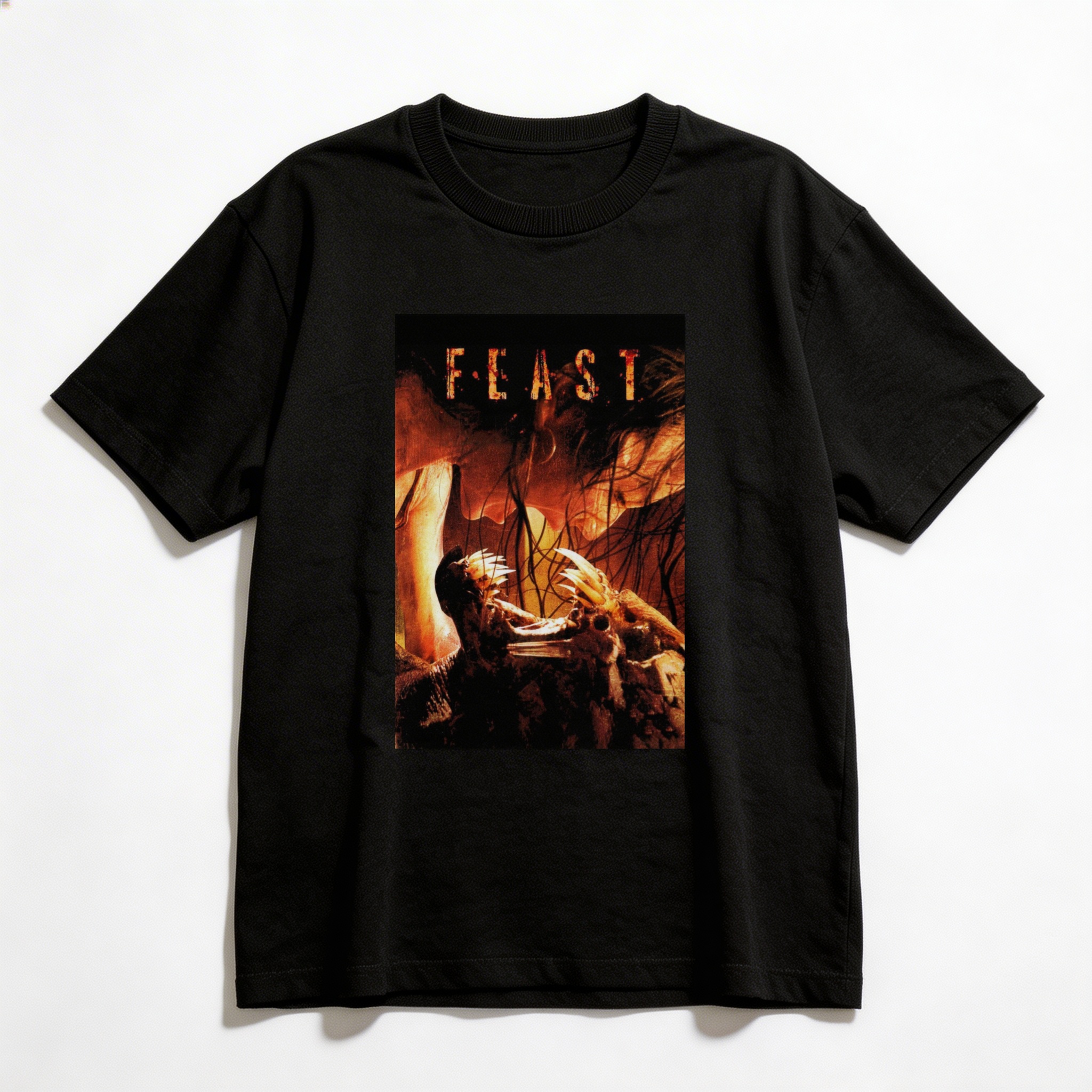 Feast (2005) chegou para destruir as regras do horror com sangue, dentes e humor negro na veia. Dirigido por John Gulager e catapultado pelo Project Greenlight, o filme prende um grupo de desconhecidos num bar sitiado por criaturas monstruosas, famintas e completamente sem explicação — porque Feast não tem tempo para backstory quando tem vísceras para mostrar. Irreverente, brutalmente violento e autoconsciente ao extremo, o filme subverteu o creature feature clássico e conquistou legião de fãs do horror B que reconhecem genialidade camuflada de caos. Gore, humor sombrio e monstros que não ligam para as suas regras narrativas: Feast é cult no sentido mais honesto da palavra. Na oversized, o terror ganha corte amplo e presença sombria. Camiseta oversized com corte amplo e tecido confortável.