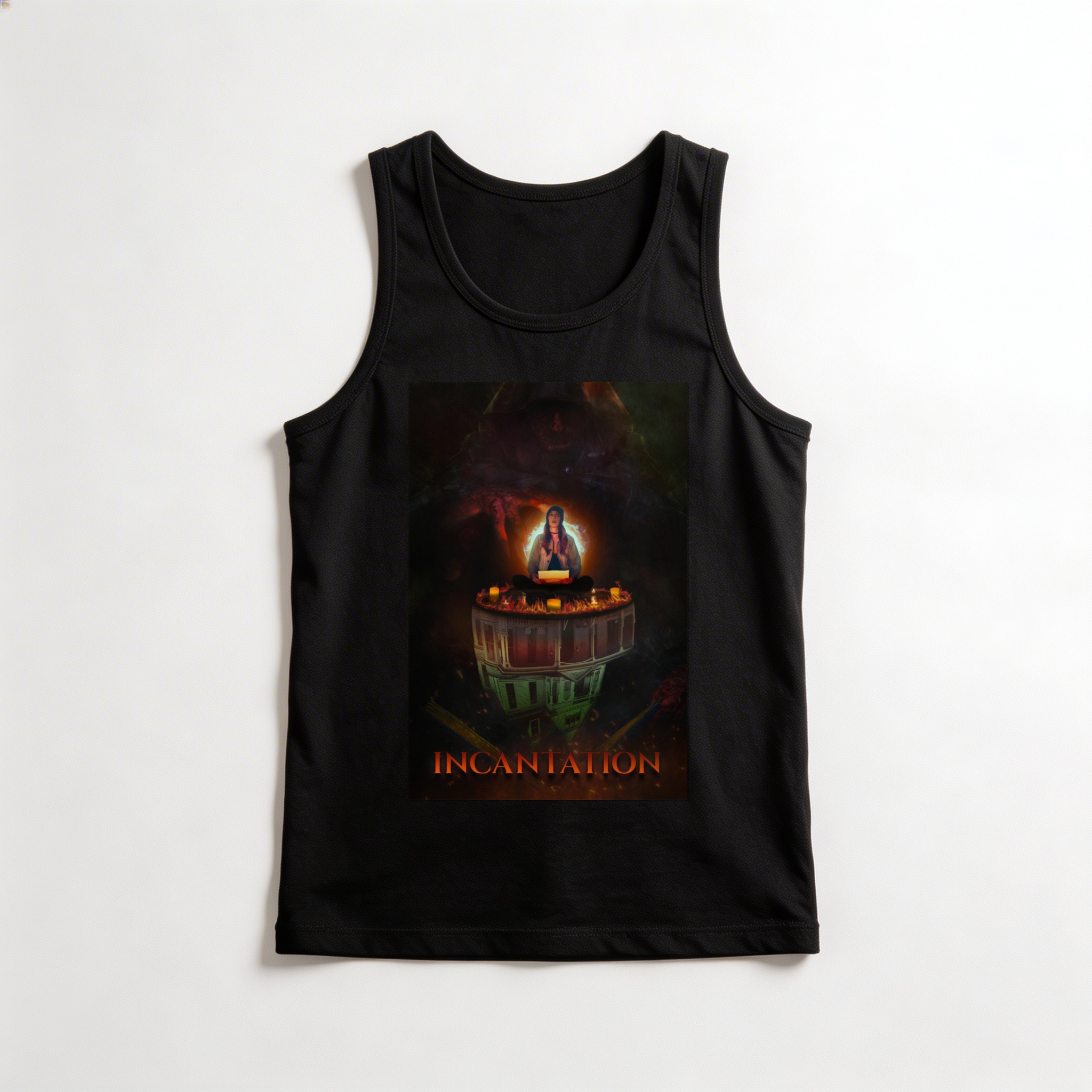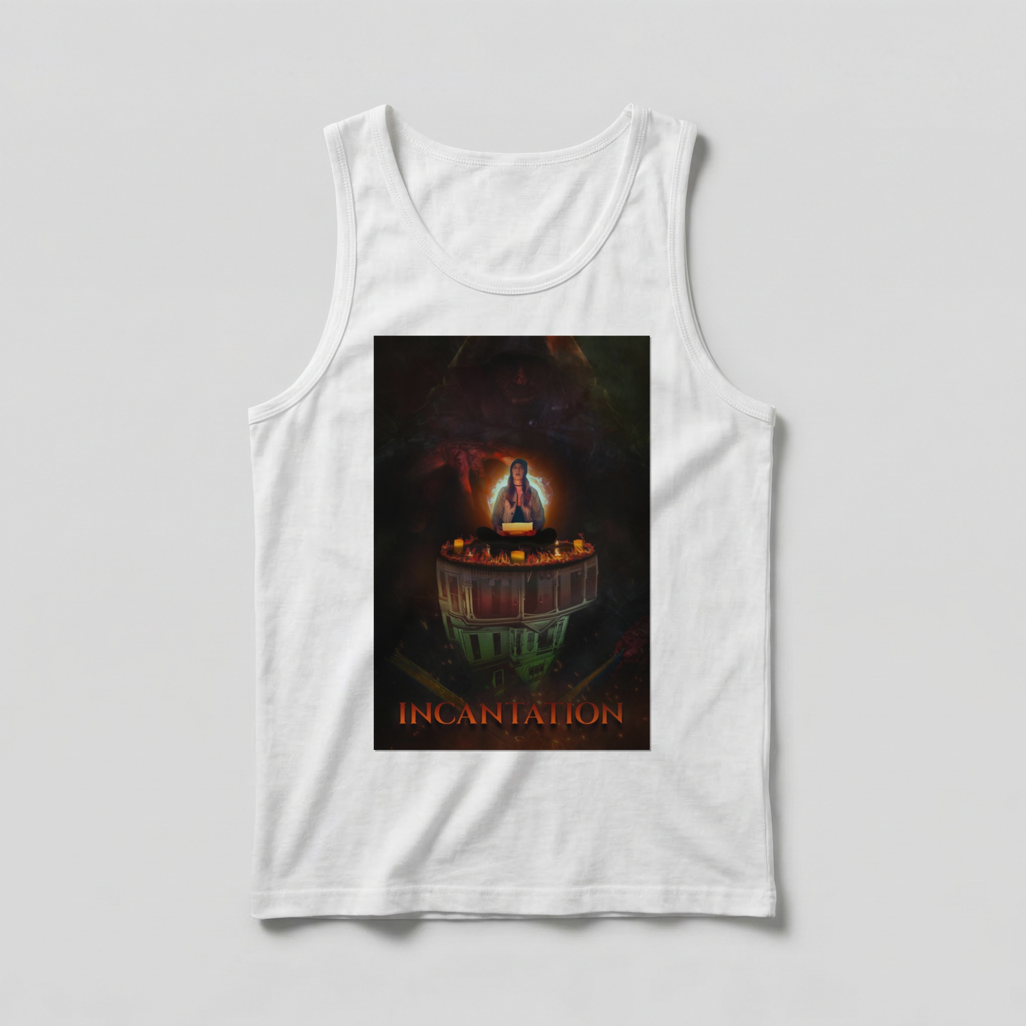 “Incantation” (2022), dirigido por Kevin Ko, é o found-footage taiwanês que redefiniu o horror sobrenatural ao transformar o próprio espectador em parte da maldição. A história segue uma mãe que, anos antes, profanou um ritual religioso proibido — e agora luta para salvar sua filha das consequências sobrenaturais desse ato. O que torna o filme singular é o convite perturbador ao público para repetir um mantra, tornando cada espectador cúmplice involuntário de algo que jamais deveria ser invocado. Fenômeno do cinema asiático de horror, Incantation conquistou o mundo pelo Netflix e deixou marcas profundas em quem ousou assistir até o fim. Um cult instantâneo do sobrenatural contemporâneo, assombrado por símbolos ancestrais e por uma angústia que persiste muito além dos créditos finais. Na regata, o terror ganha leveza e atitude sombria. Camiseta regata leve e confortável com estampa nítida.