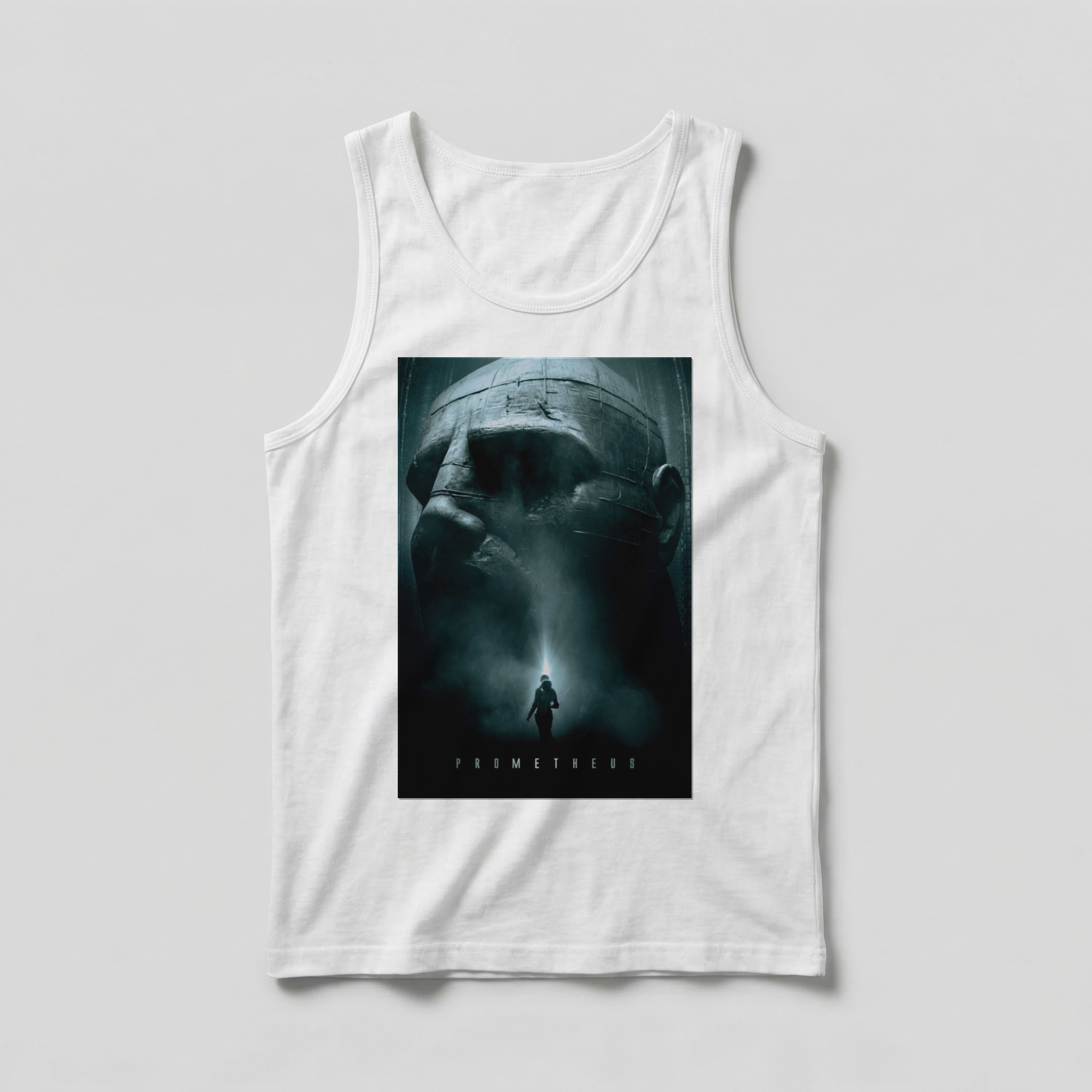 Em 2012, Ridley Scott retornou ao universo que ele mesmo criou décadas antes para assombrar uma nova geração. Prometheus mergulha na origem da humanidade e encontra apenas terror: os Engenheiros, seres antigos que nos criaram — e decidiram nos destruir. Uma espaçonave à deriva, um planeta mortal, parasitas que reescrevem o DNA e uma inteligência artificial fria como o vácuo do espaço. O filme é ficção científica sombria em estado puro, cult instantâneo que divide e fascina a cada revisão. Entre as respostas que não chegam e as criaturas que surgem do nada, Prometheus constrói um horror cósmico que ecoa Lovecraft nas estrelas. Na regata, o terror ganha leveza e atitude sombria. Camiseta regata leve e confortável com estampa nítida.