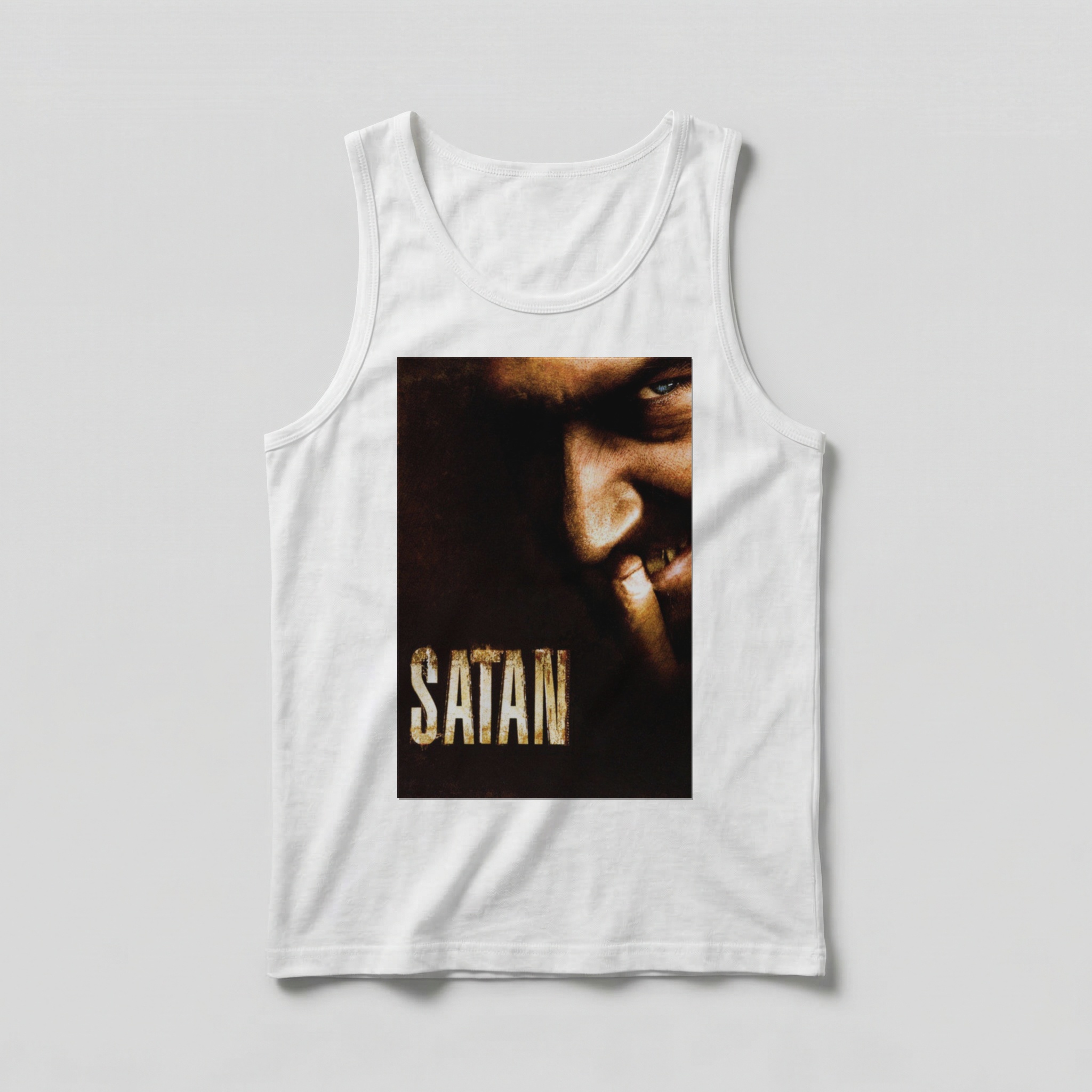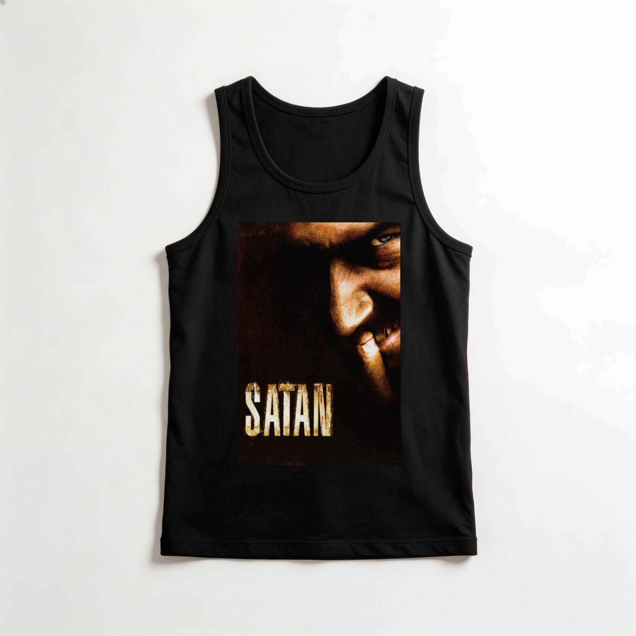 Sheitan (2006), dirigido por Kim Chapiron e estrelado por um Vincent Cassel absolutamente perturbador, é um dos marcos do horror cult europeu moderno. O filme acompanha um grupo de jovens que, após uma noite de festa, aceita o convite de uma misteriosa garota para passar o réveillon em uma casa no campo — onde encontram Joseph, um pastor excêntrico e sinistro que esconde algo de profundamente sobrenatural. Com atmosfera carregada, folklore sombrio e uma tensão que vai crescendo até o desfecho visceral, Sheitan conquistou culto absoluto entre os fãs do gênero: é inquietante, imprevisível e irresistível para quem ama o horror sem concessões. Na regata, o terror ganha leveza e atitude sombria. Camiseta regata leve e confortável com estampa nítida.