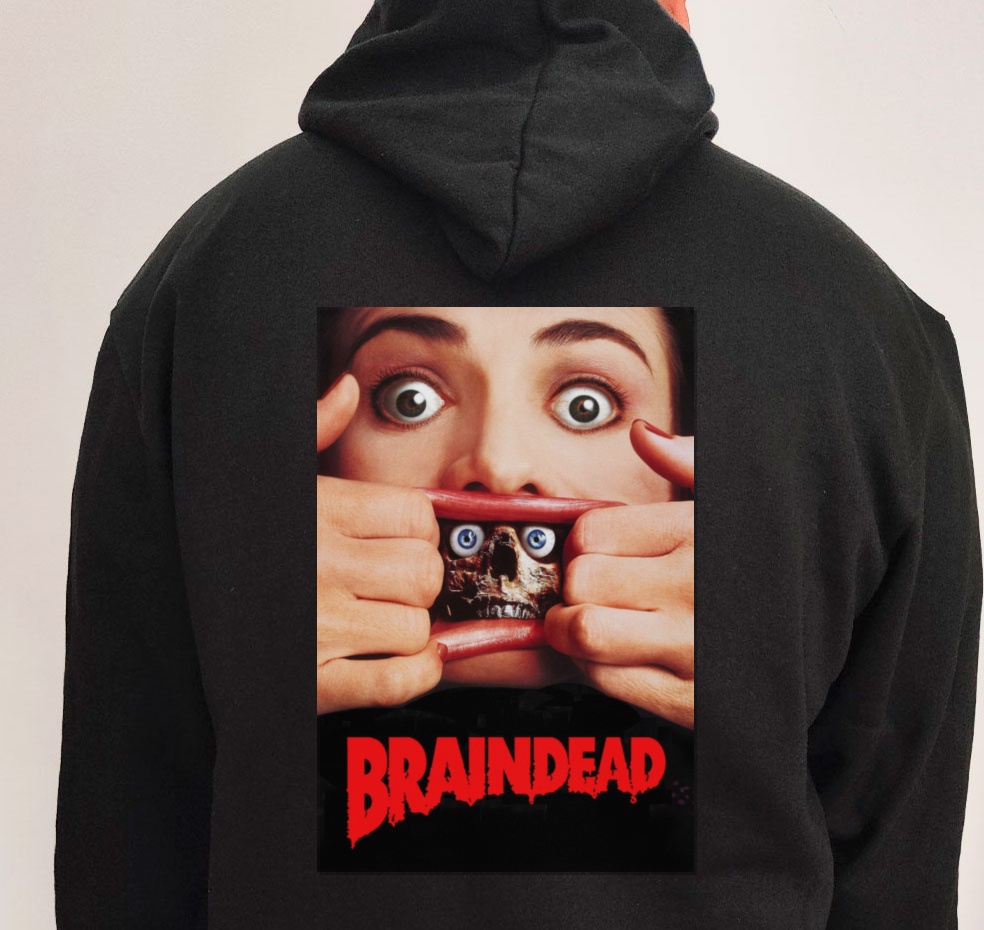 Braindead (1992), lançado no Brasil como Fome Animal, é a obra-prima do gore assinada por Peter Jackson muito antes de sua consagração com O Senhor dos Anéis. Um rato-macaco de Sumatra traz uma praga de zumbis a uma pacata cidade neozelandesa, e o que se segue é uma das experiências mais viscerais, delirantes e gloriosamente absurdas da história do cinema de horror. Sangue jorra em litros — literalmente —, corpos se multiplicam no jardim e a câmera não tem nenhuma piedade. Cult imediato e referência absoluta do splatter mundial, Braindead redefiniu os limites do horror grotesco e consagrou Peter Jackson como mestre do excesso criativo. Um filme que não pede desculpas e entrega o caos com um sorriso torto. Nesse moletom, o terror aquece nas noites mais sombrias. Moletom com capuz, bolso canguru e tecido confortável.