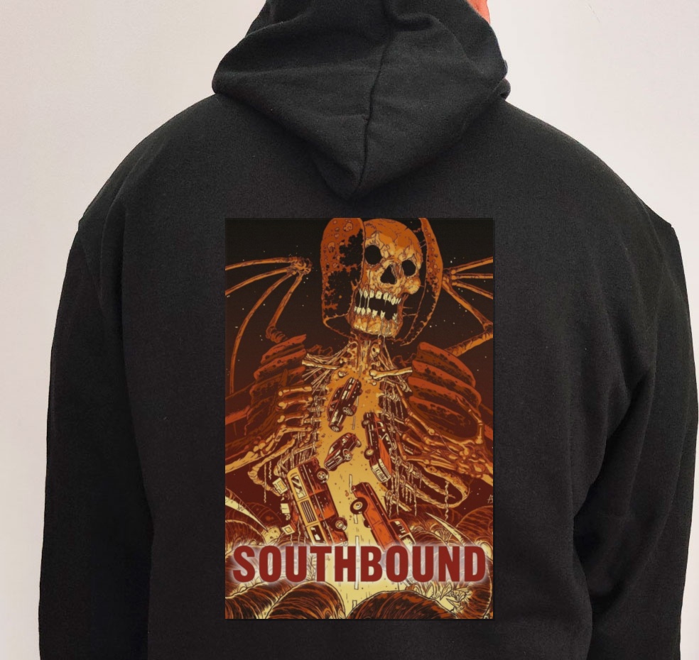 Southbound (2015) é uma antologia de terror que se passa numa estrada desértica e interminável do interior americano, onde estranhos se cruzam em histórias macabras conectadas pelo sobrenatural. Dirigido por nomes do horror independente como Radio Silence, David Bruckner, Patrick Horvath e Roxanne Benjamin, o filme é uma declaração de amor ao terror de estrada, ao folk horror e ao inexplicável. Cada conto esconde monstros, demônios e segredos que perseguem os personagens pela mesma rodovia sem fim — um loop infernal de culpa, punição e desespero que fez de Southbound um cult obrigatório entre os fãs do gênero. Atmosférico, perturbador e visualmente impecável, é uma das antologias mais respeitadas do horror contemporâneo. Nesse moletom, o terror aquece nas noites mais sombrias. Moletom com capuz, bolso canguru e tecido confortável.